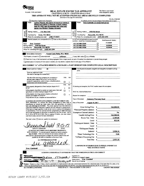 | Mailing Address: | 451 S PALMER DR PORT TOWNSEND, WA 98368-9496 | % Ownership: | 100.0000000000% |
