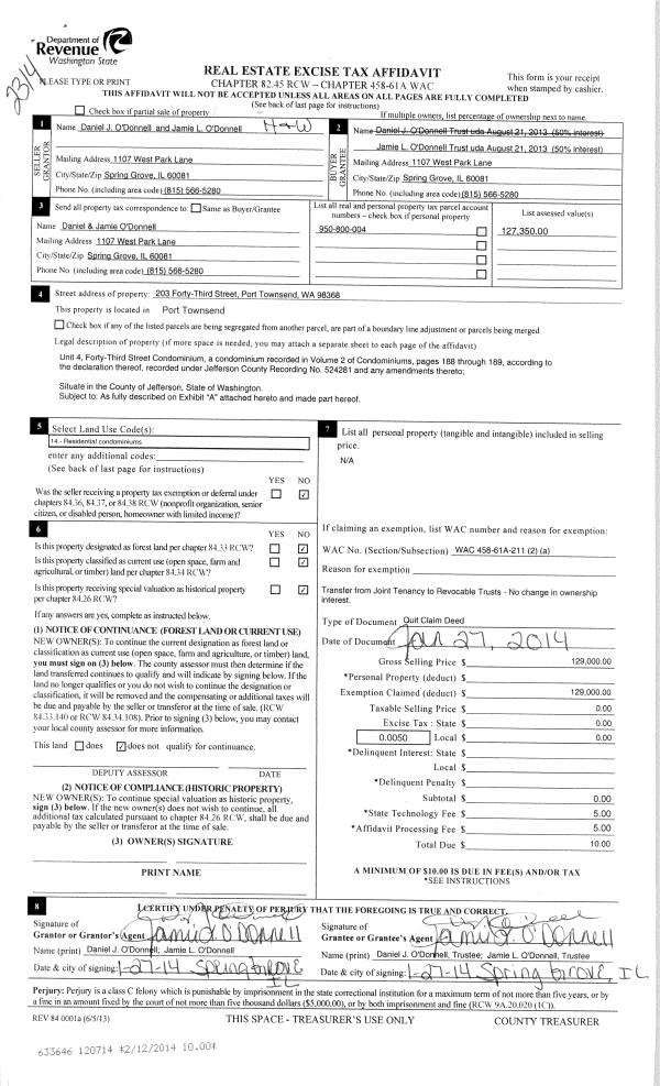 | Mailing Address: | 20 SEQUIM PL PORT TOWNSEND, WA 98368-9441 | % Ownership: | 100.0000000000% |