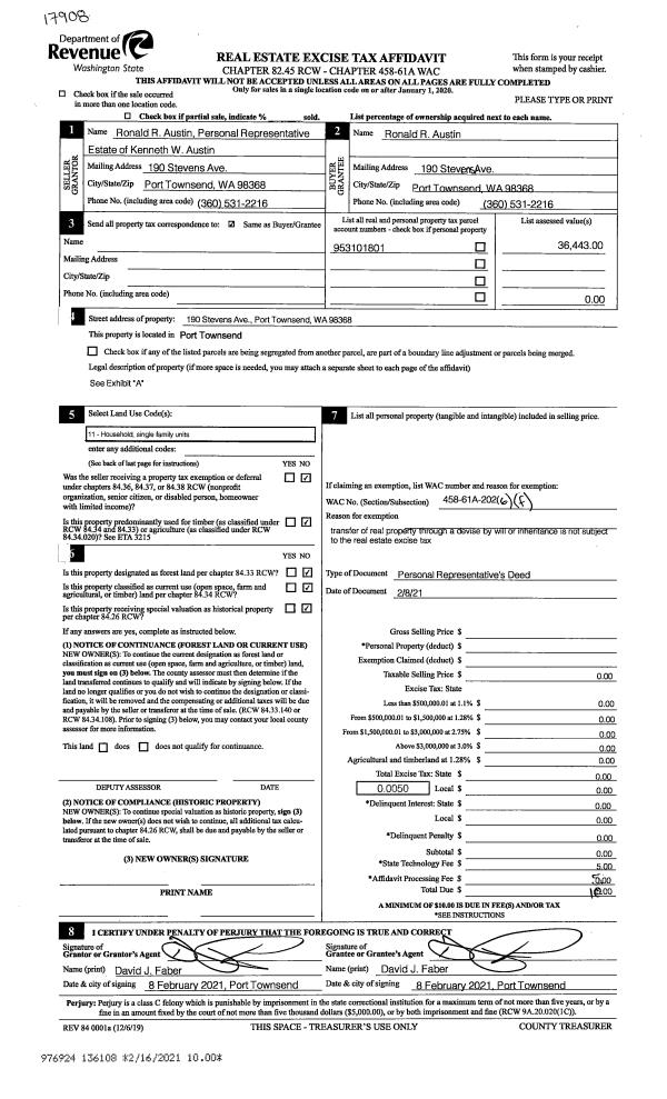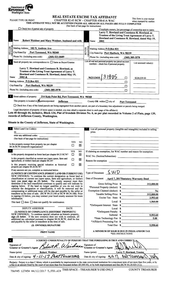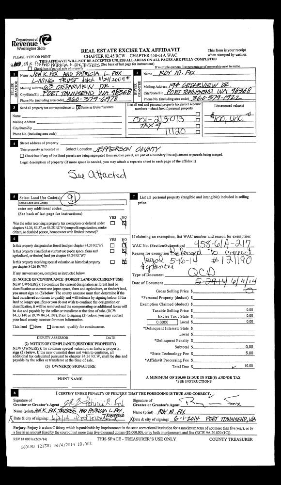 | Mailing Address: | 120 COLMAN DR PORT TOWNSEND, WA 98368-9409 | % Ownership: | 100.0000000000% |