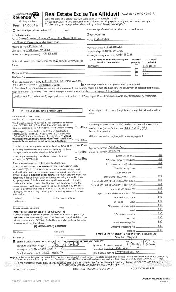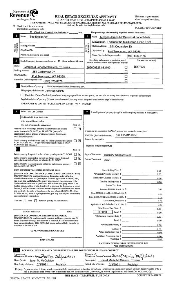 | Mailing Address: | 112 COLMAN DR PORT TOWNSEND, WA 98368-9409 | % Ownership: | 100.0000000000% |