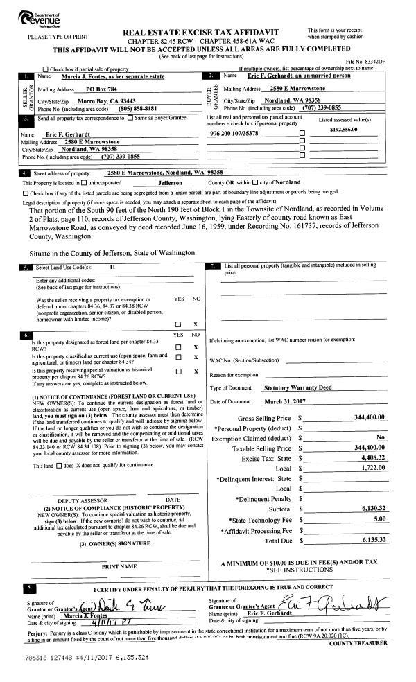 | Mailing Address: | MARLA MCGUIRE 341 COLMAN DR PORT TOWNSEND, WA 98368-9475 | % Ownership: | 100.0000000000% |