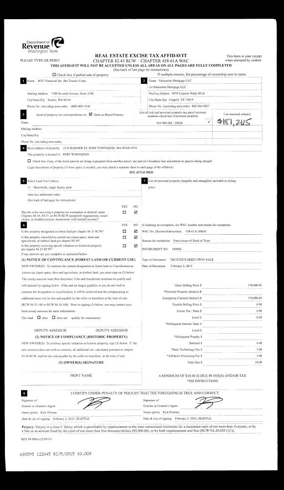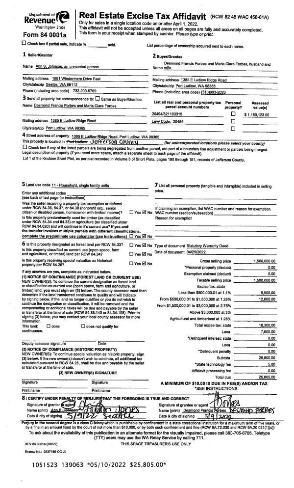 | Mailing Address: | 31 MARINE VIEW PL PORT TOWNSEND, WA 98368-9424 | % Ownership: | 100.0000000000% |