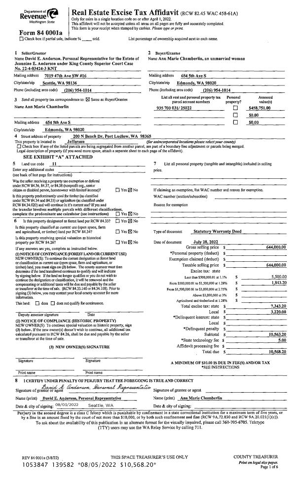 | Mailing Address: | MARIA DE MARCO 300 DENNIS BLVD PORT TOWNSEND, WA 98368-9481 | % Ownership: | 100.0000000000% |