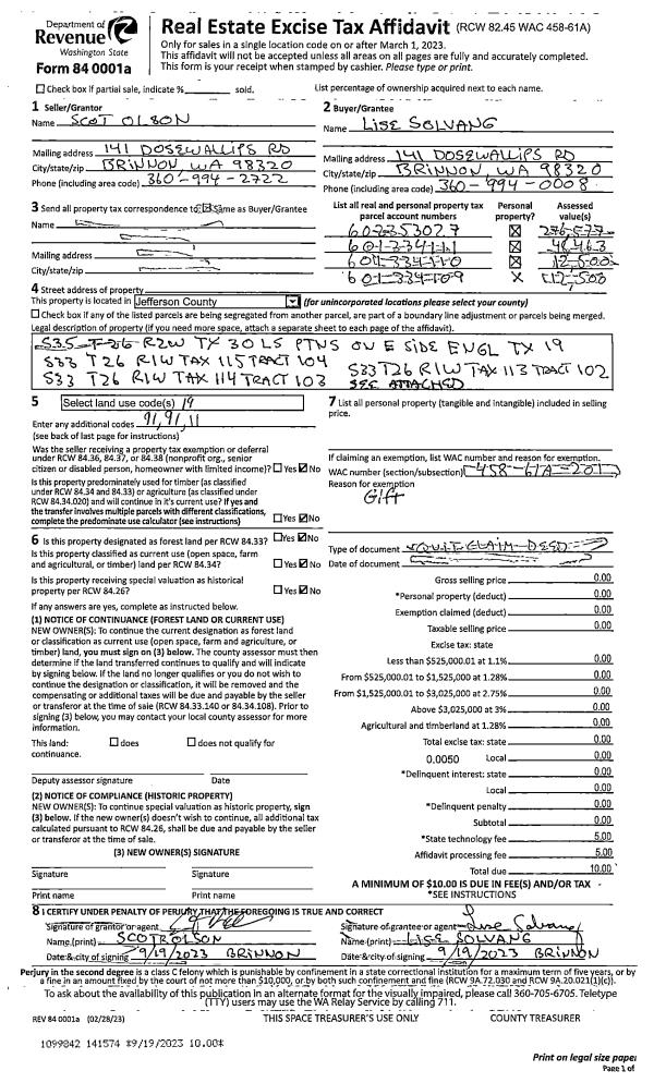 | Mailing Address: | 240 DENNIS BLVD PORT TOWNSEND, WA 98368-9411 | % Ownership: | 100.0000000000% |