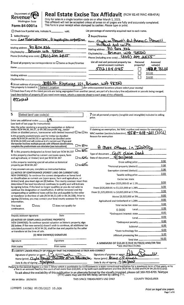 | 1 | 10/10/2007 | QCD | Quit Claim Deed | PIERSON, RAYMOND & EILEEN | PIERSON, TRUST | 0 | 0 | $0.00 | 110185 | 0 |