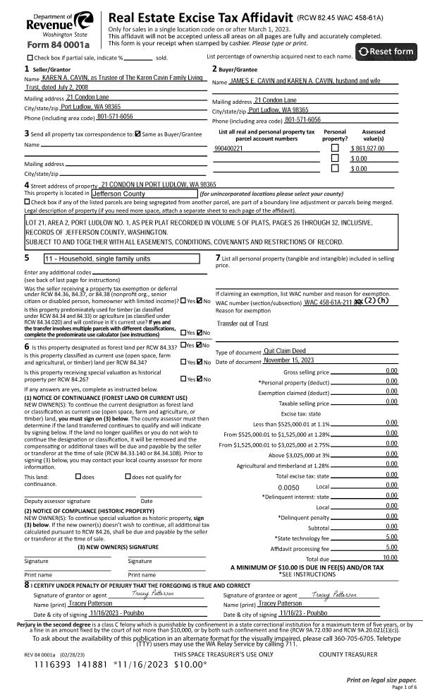 | Mailing Address: | 171 HEMLOCK DR PORT TOWNSEND, WA 98368-9439 | % Ownership: | 100.0000000000% |