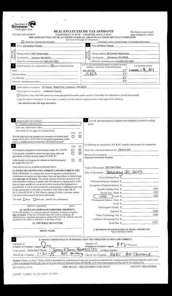 | Mailing Address: | 340 RIDGE DRIVE PORT TOWNSEND, WA 98368 | % Ownership: | 100.0000000000% |