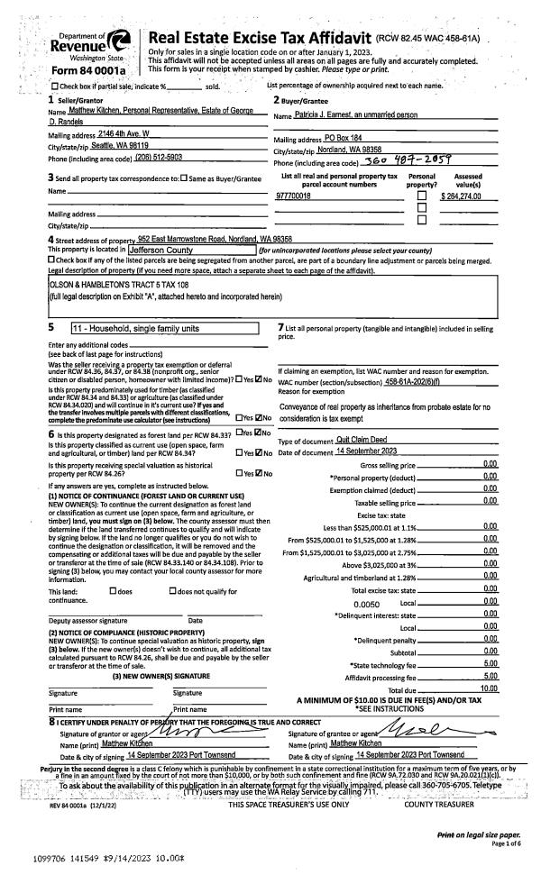 | Mailing Address: | 560 DENNIS BLVD PORT TOWNSEND, WA 98368-9482 | % Ownership: | 100.0000000000% |