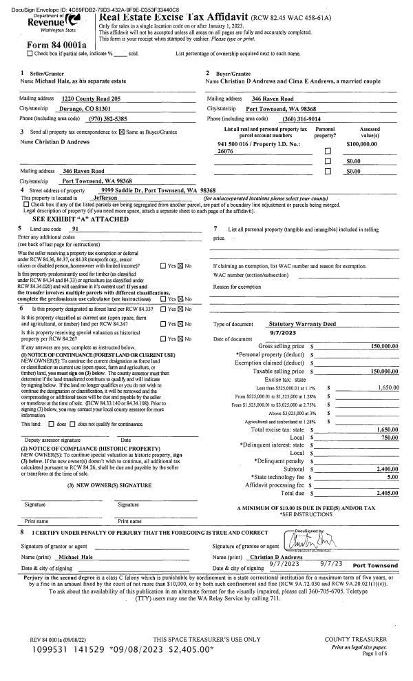 | Mailing Address: | 391 RIDGE DR PORT TOWNSEND, WA 98368-9494 | % Ownership: | 100.0000000000% |