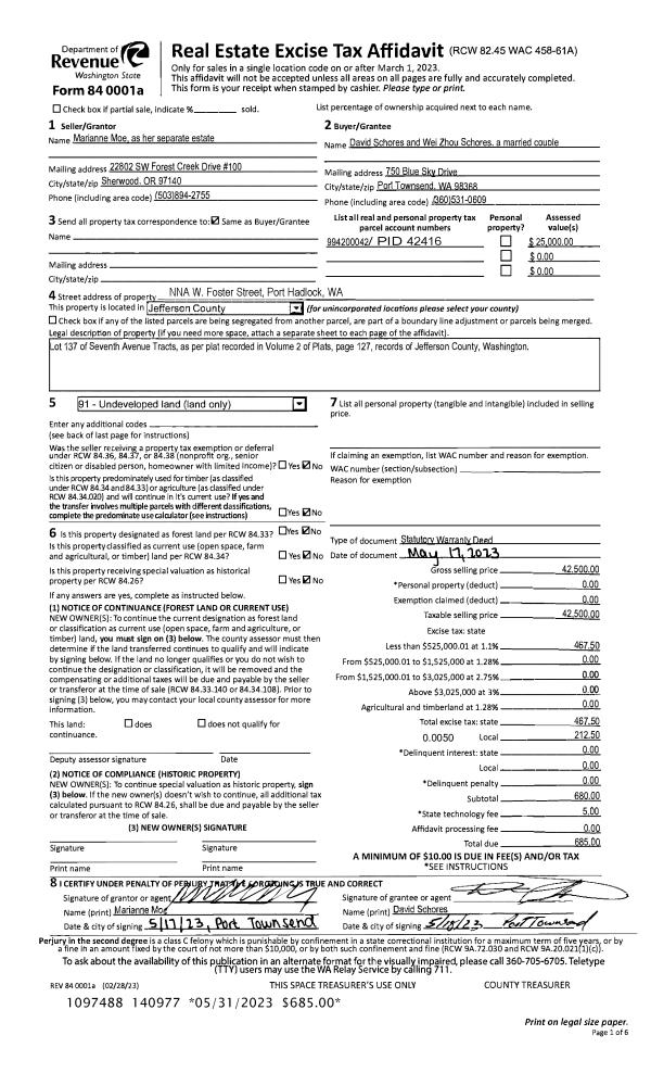 | Mailing Address: | 350 CASTELLANO WAY #203 PORT TOWNSEND, WA 98368-5017 | % Ownership: | 100.0000000000% |