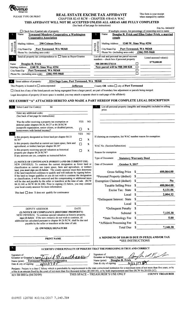 | Mailing Address: | LORNA DALE SMITH 141 MAPLE DR PORT TOWNSEND, WA 98368 | % Ownership: | 100.0000000000% |