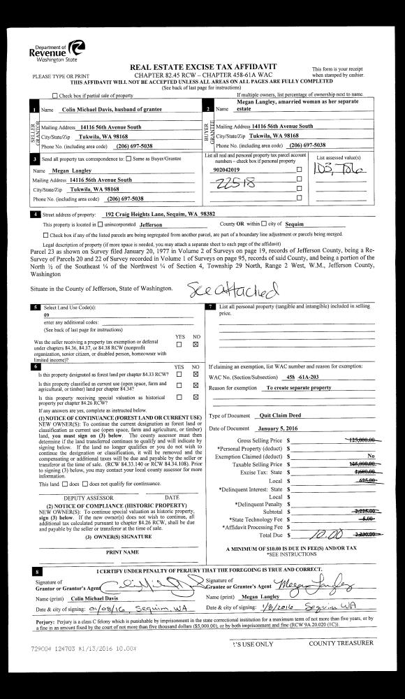 | 4 | 07/13/2016 | SWD | Statutory Warranty Deed | GEORGE L MOWBRAY | WILLIAM WILL | | | $170,000.00 | 125866 | |