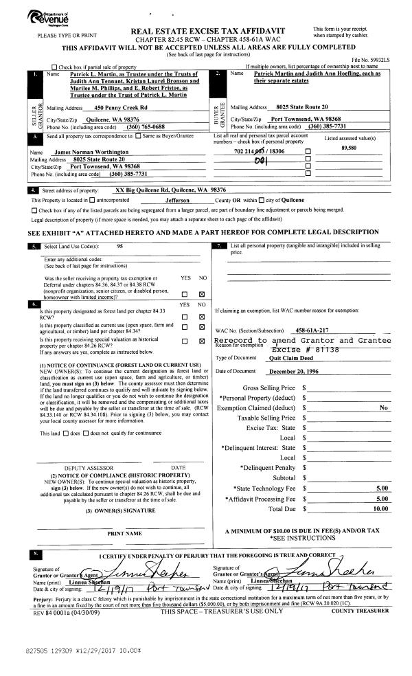 | Mailing Address: | 141 PINE DR PORT TOWNSEND, WA 98368-2429 | % Ownership: | 100.0000000000% |