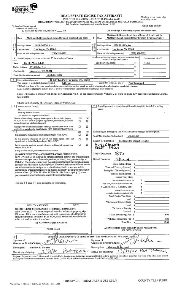 | Mailing Address: | 12 BENSON CRST PORT ANGELES, WA 98363-8345 | % Ownership: | 100.0000000000% |