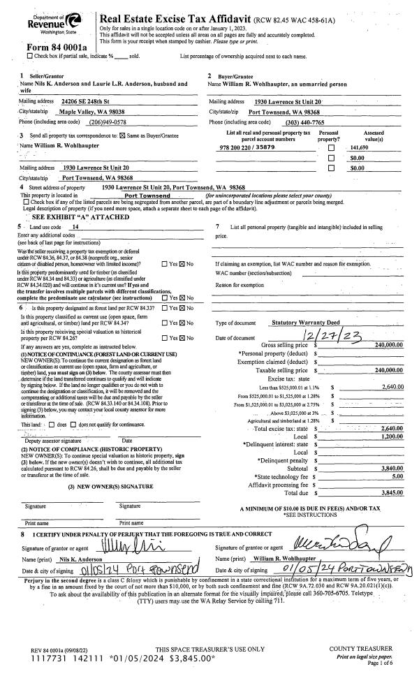 | 1 | 11/06/2024 | SWD | Statutory Warranty Deed | POINT SOURCE SOLUTIONS LLC | JEFFREY JACKMAN | | | $730,000.00 | 143485 | |