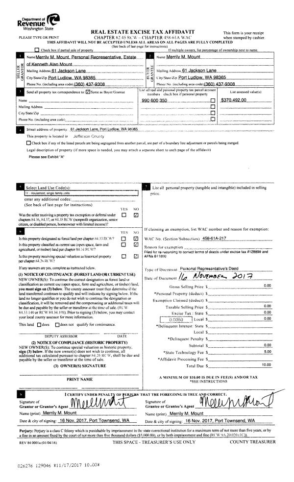 | Mailing Address: | 150 PINE DR PORT TOWNSEND, WA 98368-9429 | % Ownership: | 100.0000000000% |