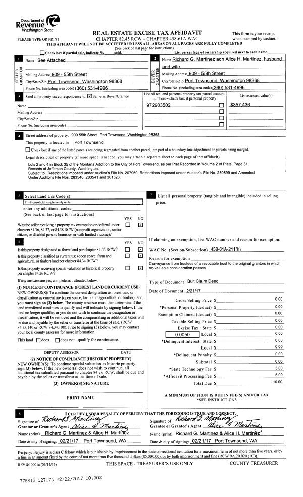 | 1 | 06/23/2017 | QCD | Quit Claim Deed | | | | | | 128241 | |