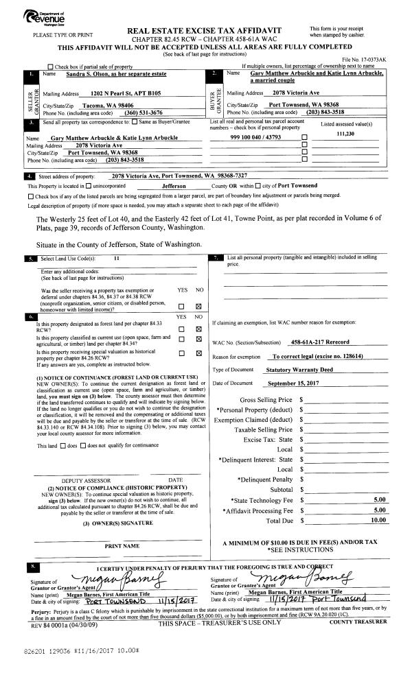 | Mailing Address: | MICHELE K MINOR 72 ALDER DR PORT TOWNSEND, WA 98368-9460 | % Ownership: | 100.0000000000% |