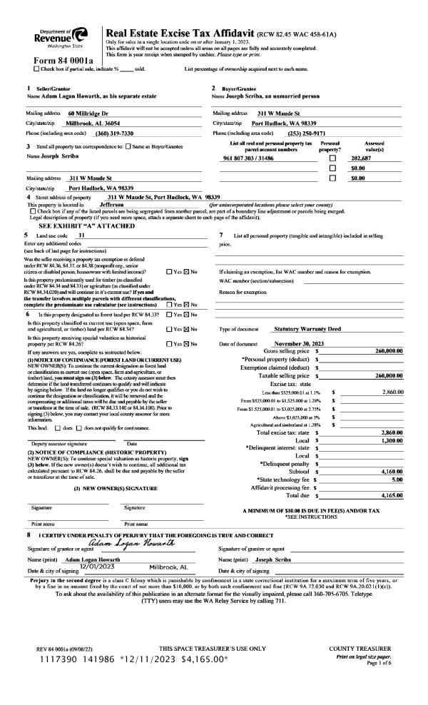 | 1 | 04/07/2023 | SWD | Statutory Warranty Deed | LINDA M ROBERTSON | FREDRIC HOWE | | | $540,000.00 | 140770 | |