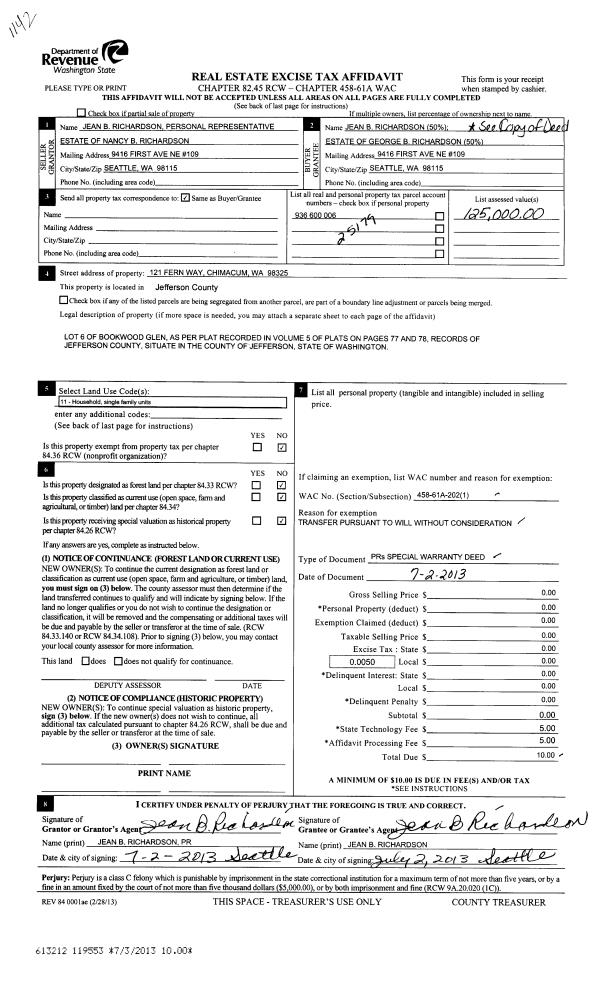 | 3 | 07/28/2014 | SWD | Statutory Warranty Deed | GLORIA T LAMSON | ROBERT & ELISA STEIN | | | $210,000.00 | 121626 | |