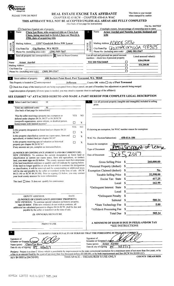 | Mailing Address: | 273 SADDLE DR PORT TOWNSEND, WA 98368-8902 | % Ownership: | 100.0000000000% |