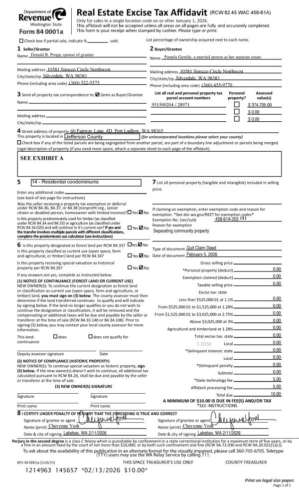 | Mailing Address: | 26412 BARRETT RD NE KINGSTON, WA 98346 | % Ownership: | 100.0000000000% |