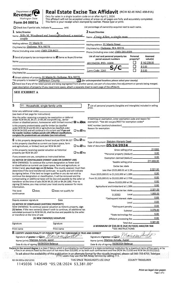 | Mailing Address: | MARCY Y MIKA 321 OTTO ST PORT TOWNSEND, WA 98368-9391 | % Ownership: | 100.0000000000% |