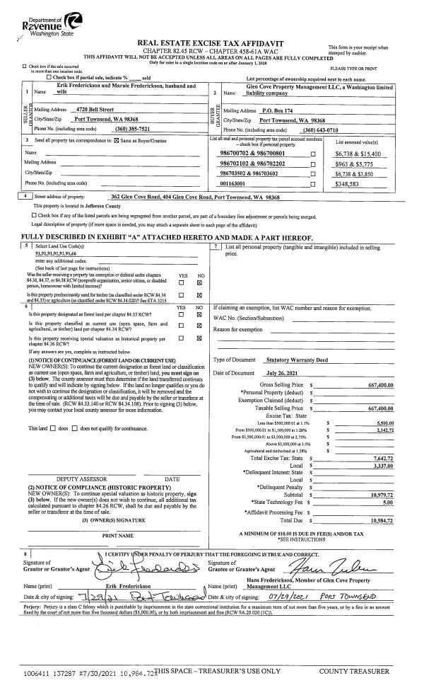 | 1 | 1210-1175L | Lots in Carroll's Hood Canal View Estates | 0.0000 | 0.00 | 0.00 | 0.00 | 20.00 | $90,750 | $0 |