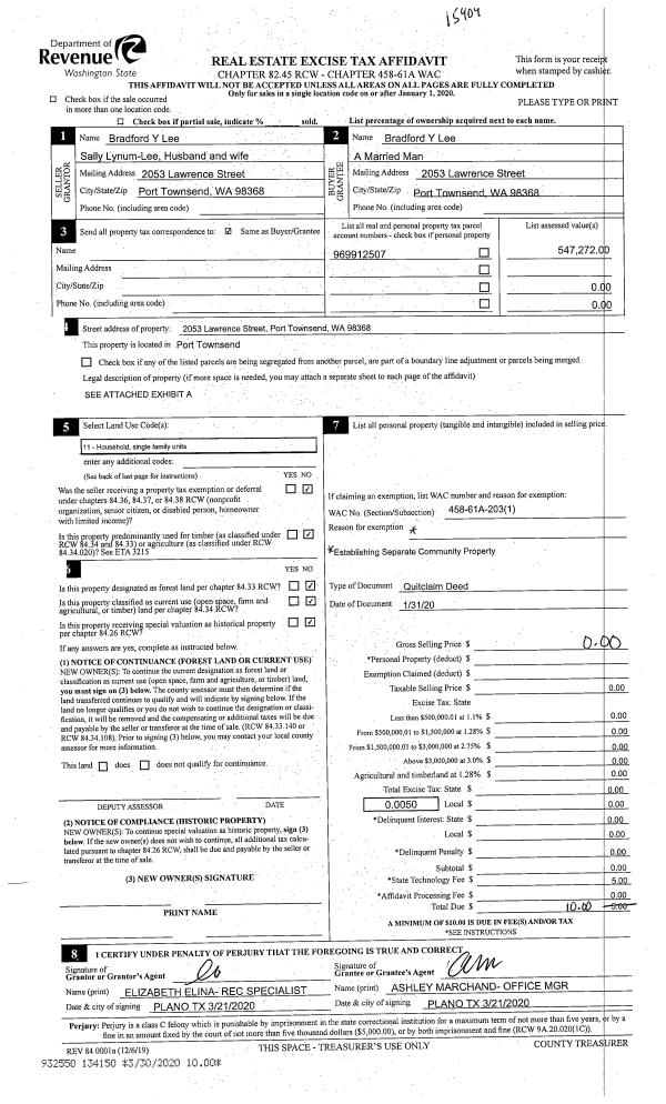 | Mailing Address: | LISA A JOHNSTON PO BOX 251 BRINNON, WA 98320-0251 | % Ownership: | 100.0000000000% |