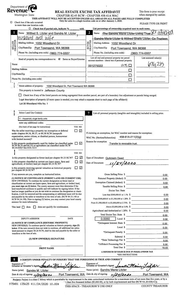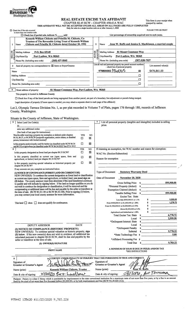 | 1 | 04/01/2021 | SWD | Statutory Warranty Deed | ALICE R THOMAS JOHNSON | THEODORE & DONNA J KITCHNER | | | $100,000.00 | 136446 | |