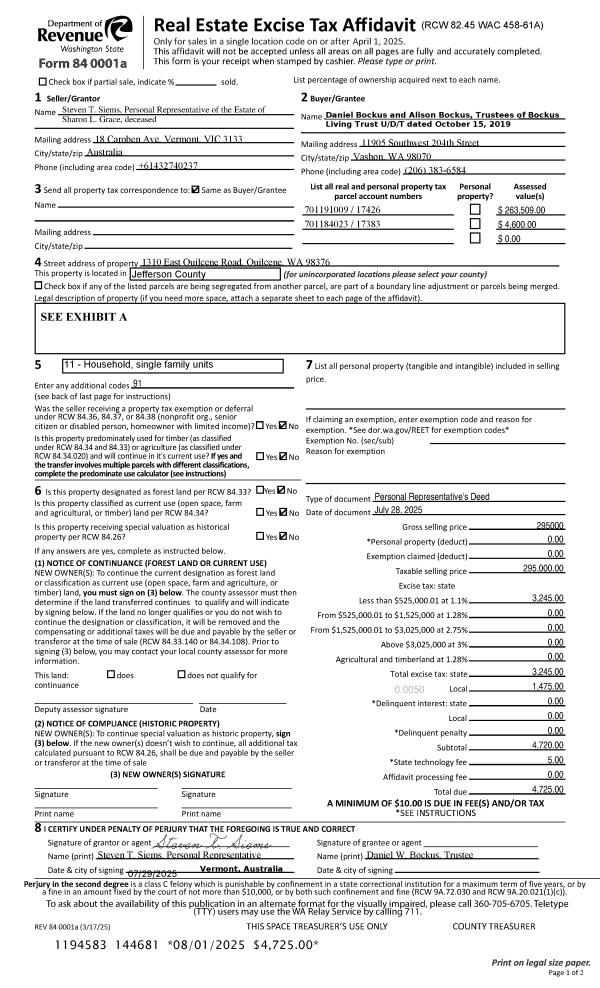 | 1 | 08/27/2021 | SWD | Statutory Warranty Deed | DIANE M SIMMONS TRUSTEE | KELLY BOSWELL | | | $325,000.00 | 137517 | |