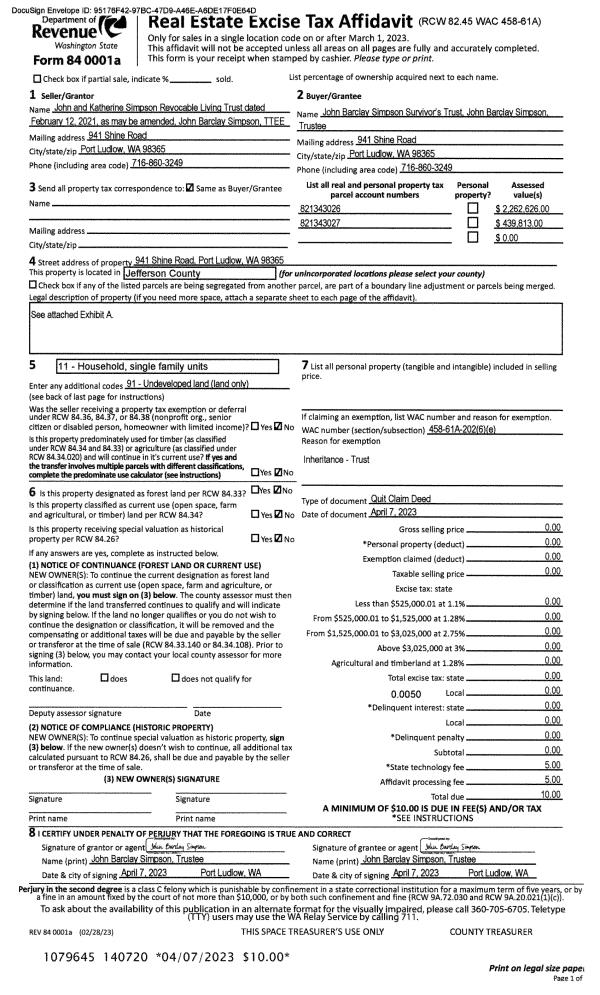 | Mailing Address: | 41 PATISON ST PORT HADLOCK, WA 98339-9540 | % Ownership: | 100.0000000000% |