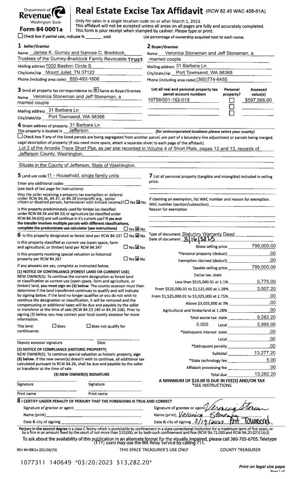 | Mailing Address: | JASON K BENTON JTWROS 990 CHIMACUM RD PORT HADLOCK, WA 98339-9715 | % Ownership: | 100.0000000000% |