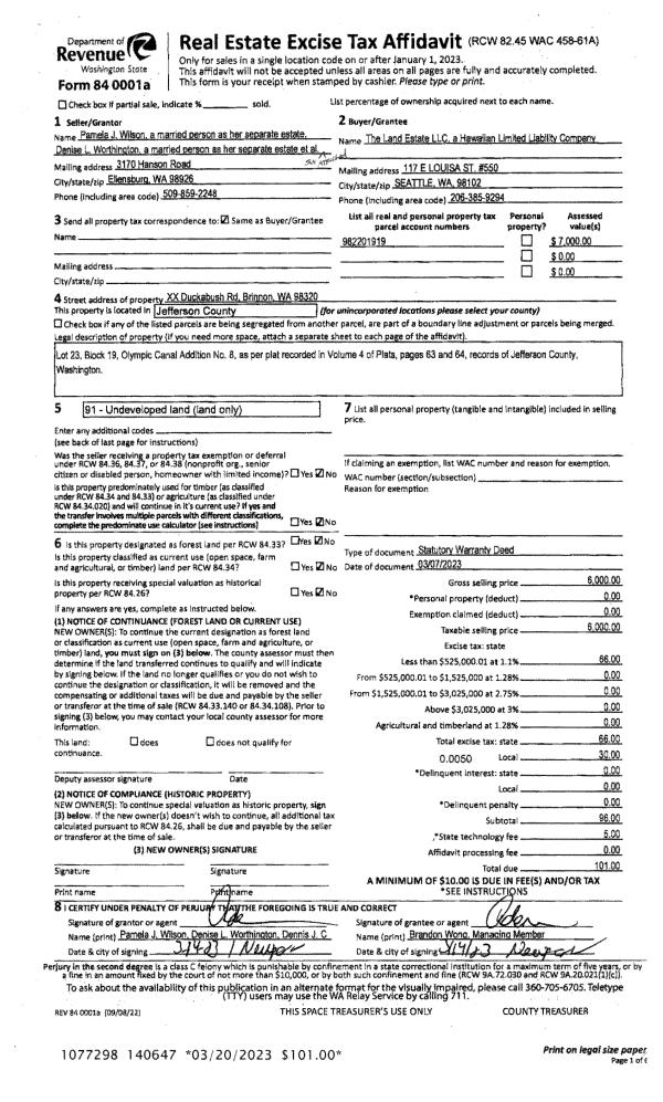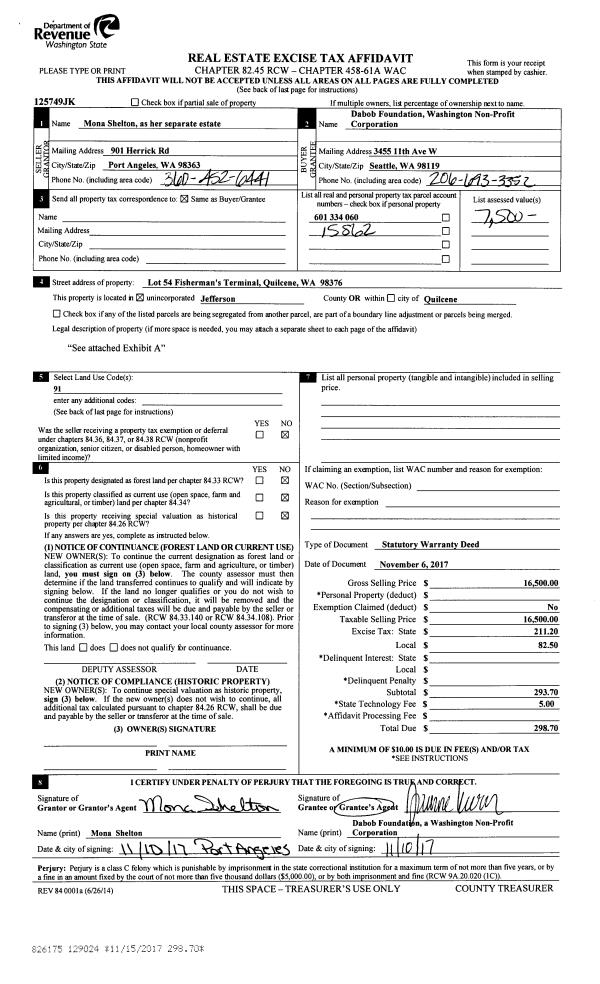 | Mailing Address: | CATHERINE FESTINGER TRUSTEE 30 PATISON ST PORT HADLOCK, WA 98339-9540 | % Ownership: | 100.0000000000% |