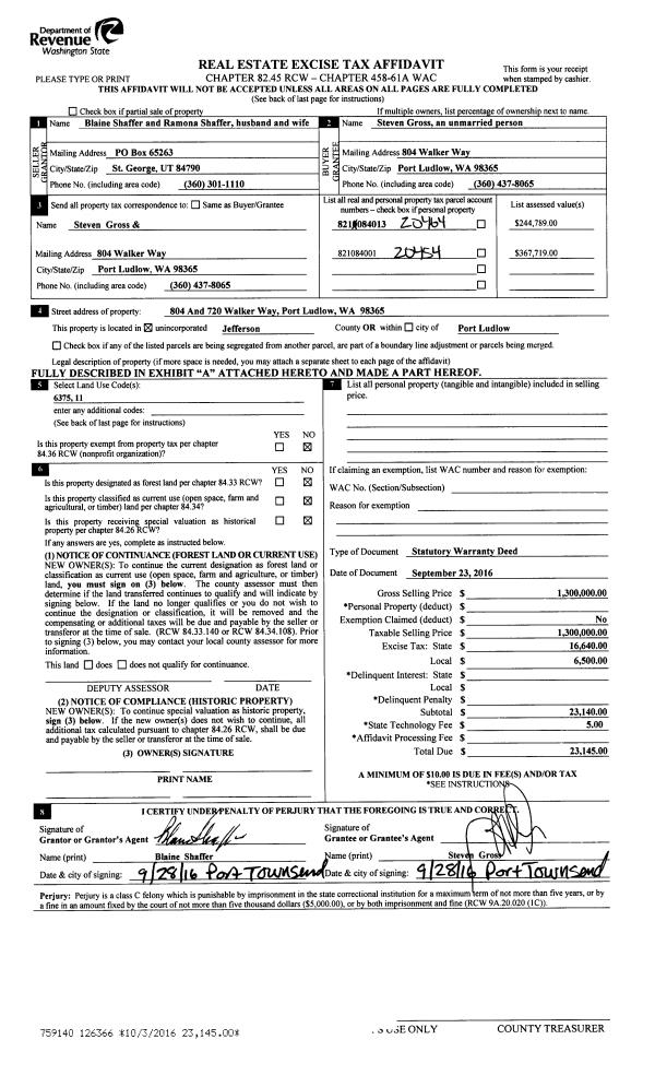 | Mailing Address: | 71 WOODMAN RD PORT TOWNSEND, WA 98368-9794 | % Ownership: | 100.0000000000% |