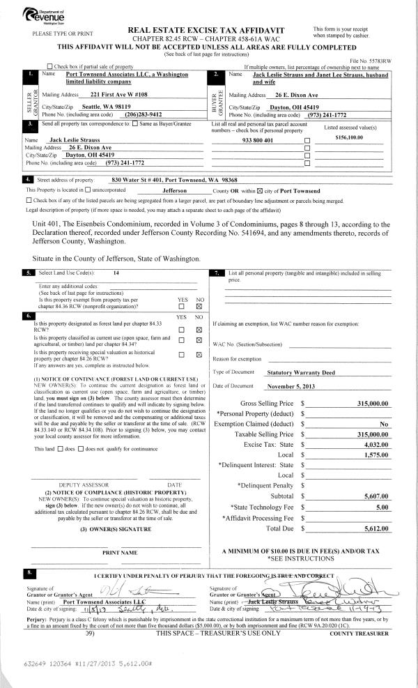 | Mailing Address: | 90 MAY ST PORT HADLOCK, WA 98339 | % Ownership: | 100.0000000000% |