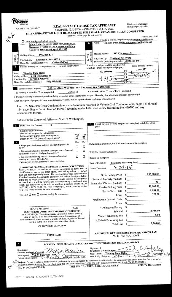 | 3 | 10/28/2015 | QCD | Quit Claim Deed | JEFFREY R ASHMORE | PT REAL ESTATE INC | | | | 124261 | |