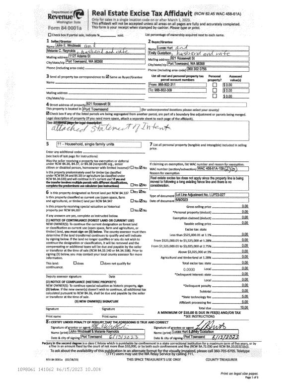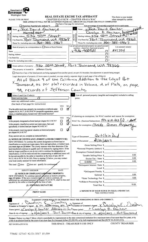 | Mailing Address: | 10 FOSTER ST PORT HADLOCK, WA 98339-9519 | % Ownership: | 100.0000000000% |