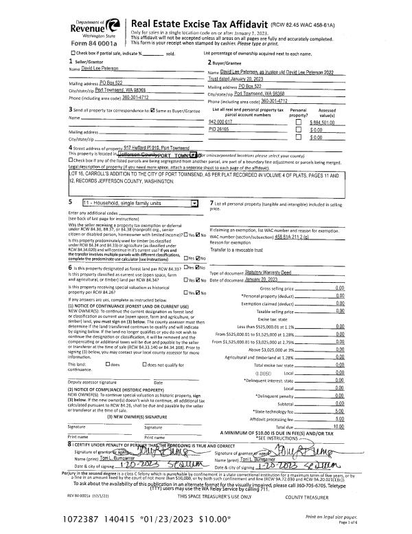 | Mailing Address: | 2023 E SIMS WAY BOX # 237 PORT TOWNSEND, WA 98368 | % Ownership: | 100.0000000000% |