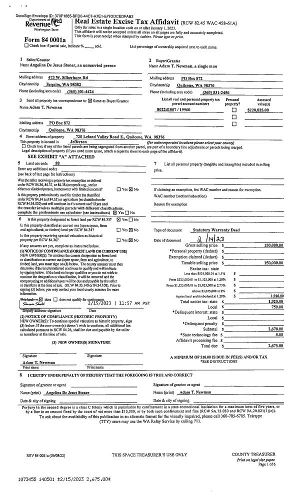 | Mailing Address: | JONATHAN FREDERICK WAGGONER PO BOX 4 PORT HADLOCK, WA 98339-0004 | % Ownership: | 100.0000000000% |