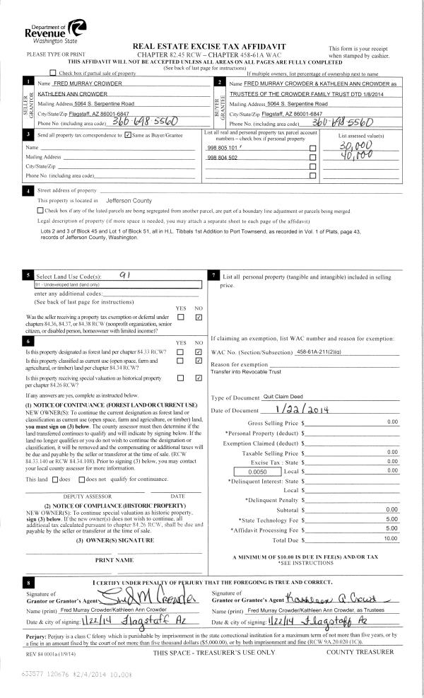| Mailing Address: | 24 COLWELL ST PORT HADLOCK, WA 98339-9701 | % Ownership: | 100.0000000000% |