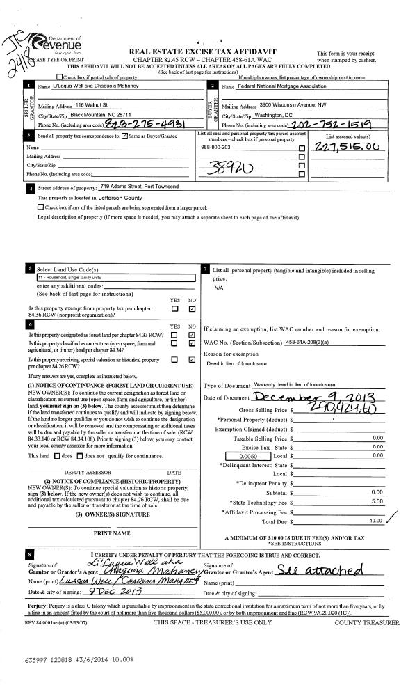 | 1 | 12/03/2014 | SWD | Statutory Warranty Deed | ENCLUME DESIGNS LLC | HADLOCK HOLDINGS LLC | | | $1,000,000.00 | 122339 | |