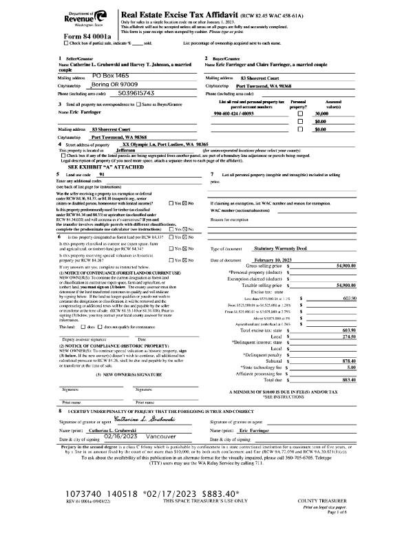 | Mailing Address: | 124 NESS CORNER RD PORT HADLOCK, WA 98339-9409 | % Ownership: | 100.0000000000% |