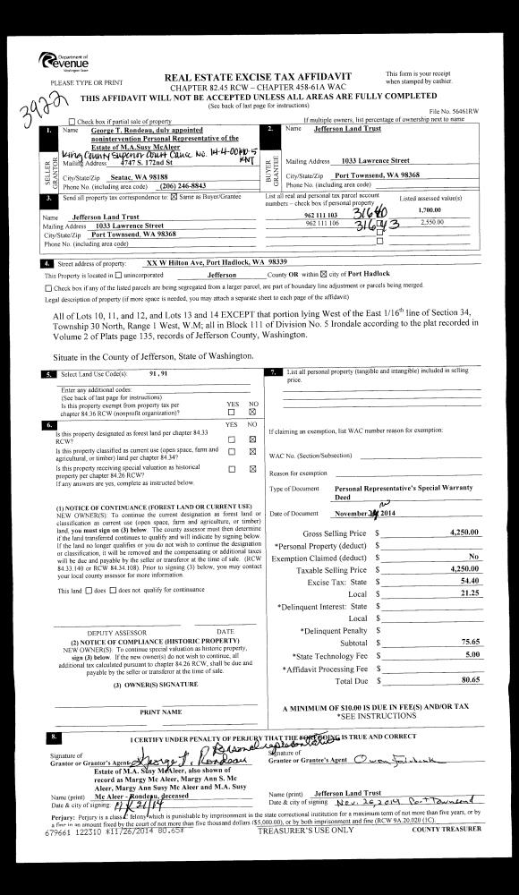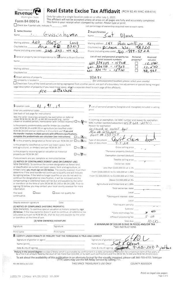 | 1 | 12/09/2015 | SWD | Statutory Warranty Deed | DAN YOURA | CHIMACUM PROPERTIES LLC | | | $262,500.00 | 124519 | |