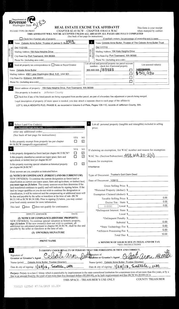 | Mailing Address: | 1290 CEDAR ST PORT TOWNSEND, WA 98368-4007 | % Ownership: | 100.0000000000% |