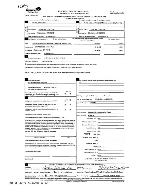 | Mailing Address: | JUDY A HOFFMAN 1210 CEDAR ST PORT TOWNSEND, WA 98368-4007 | % Ownership: | 100.0000000000% |