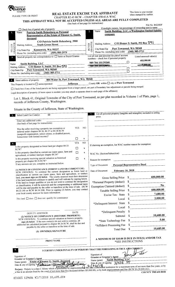 | Mailing Address: | 3220 HOWARD ST PORT TOWNSEND, WA 98368-4750 | % Ownership: | 100.0000000000% |
