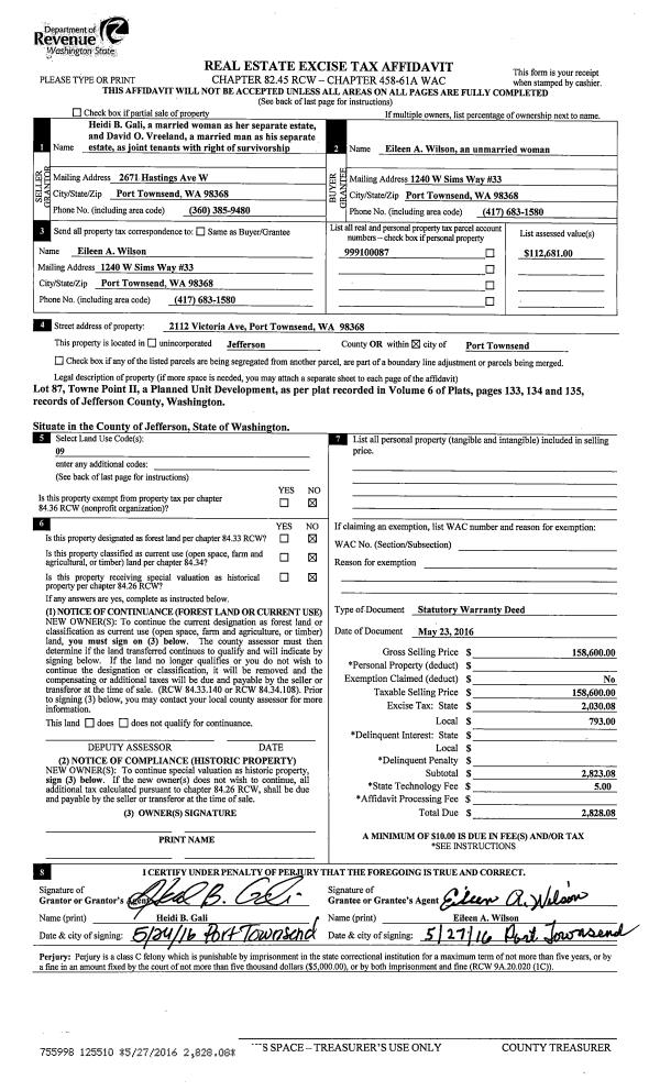 | 1 | 05/25/2017 | SWD | Statutory Warranty Deed | WILLIAM F STEVENS | KRIS & LISA KARLSTROM | | | $280,000.00 | 127781 | |