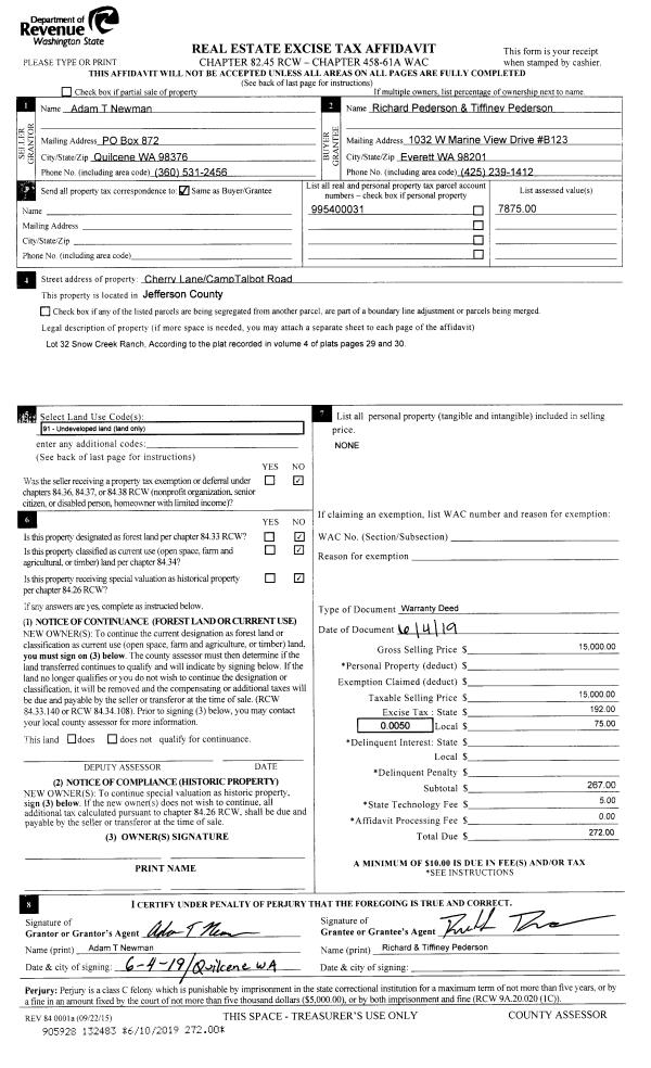 | 1 | 4218-1284S | Chimacum Creek Estates Div II Sites | 0.0000 | 0.00 | 0.00 | 0.00 | 1.00 | $38,500 | $0 |