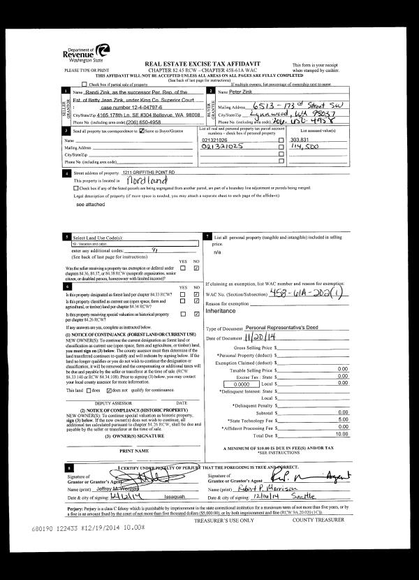 | Mailing Address: | 1141 GRIFFITH POINT RD NORDLAND, WA 98358 | % Ownership: | 100.0000000000% |